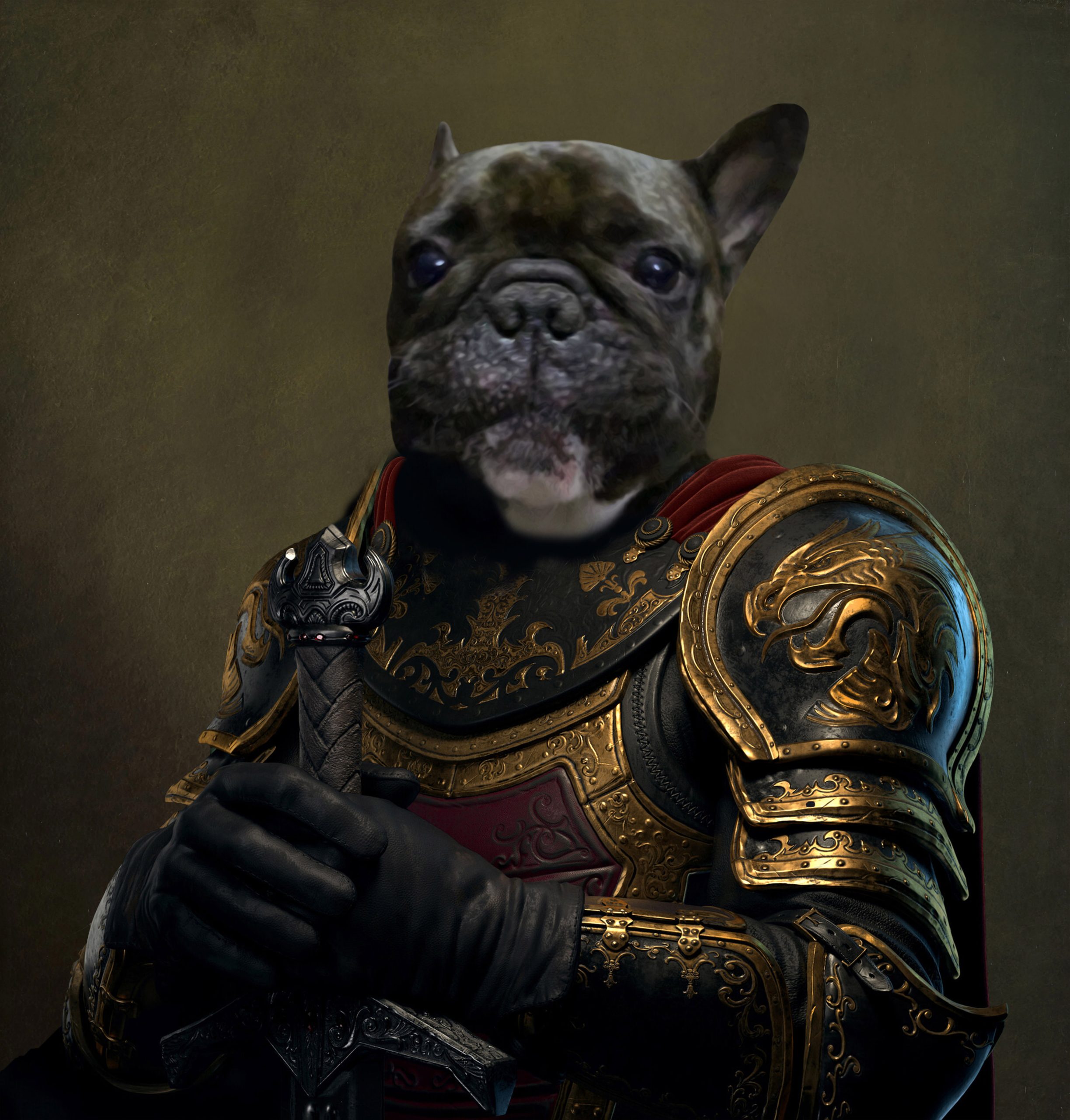 Tablou personalizat cu animalul tău de companie – Armură medievală cu sabie