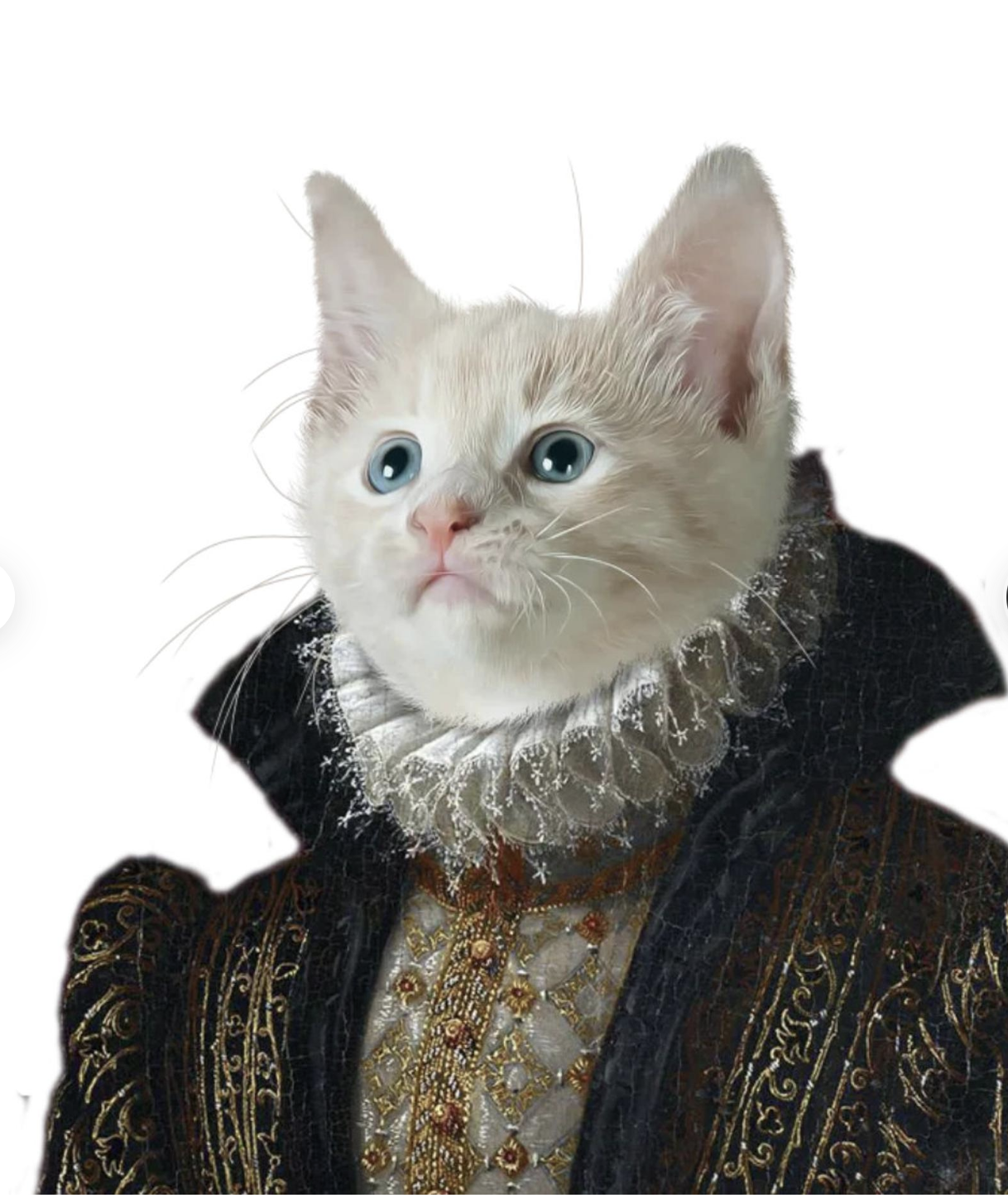 și personalitatea companionului tău, integrând capul animalului într-un corp aristocratic, regal sau militar, inspirat din epoci istorice.