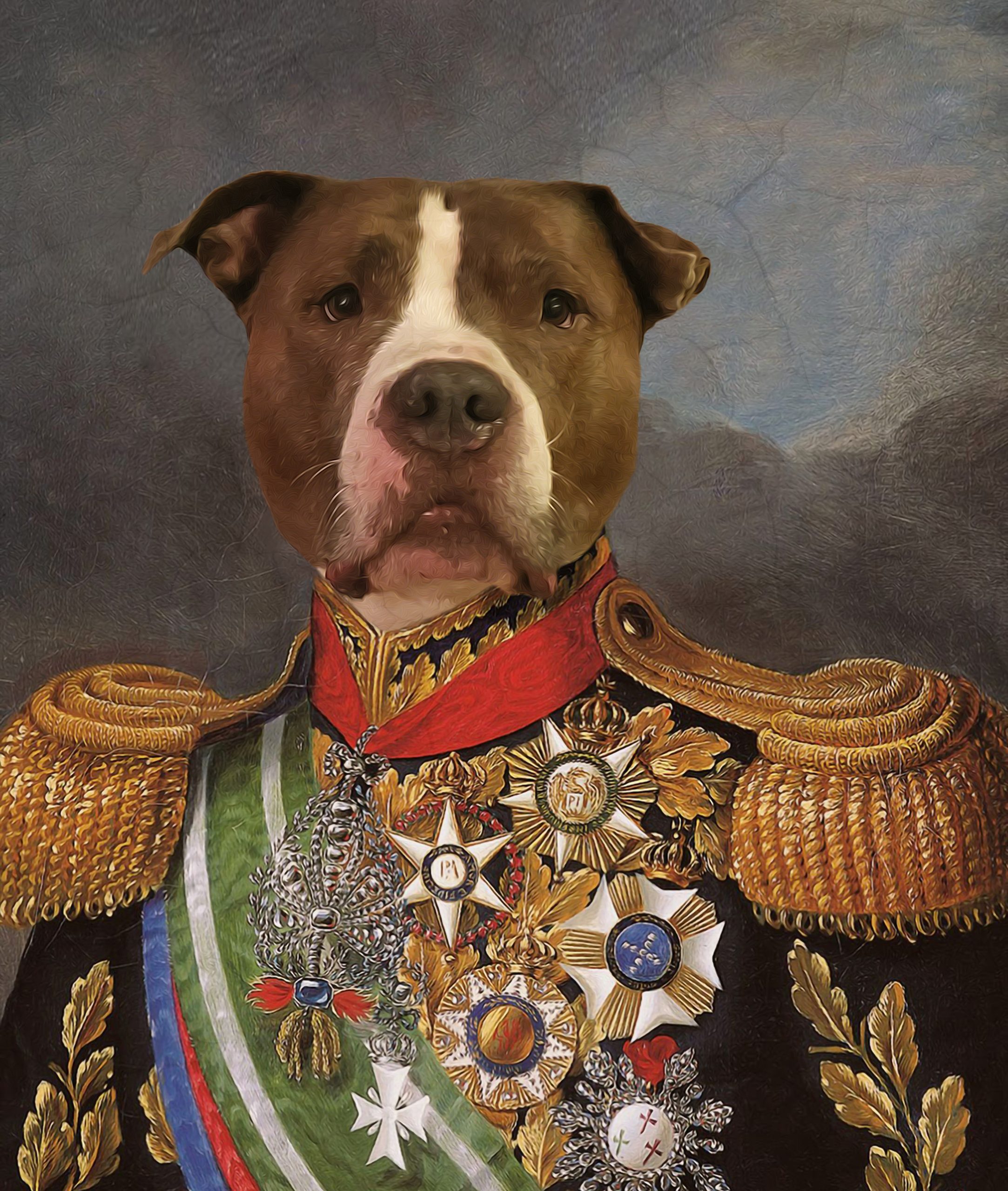 și personalitatea companionului tău, integrând capul animalului într-un corp aristocratic, regal sau militar, inspirat din epoci istorice.